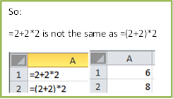 Formulas follow standard mathematical rules in the sequencing of the different calculations in a formula.
