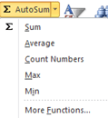 The AutoSum button is an easy way to create the functions Sum, Average, Max, Min and Count, as well as being one method to access other functions.