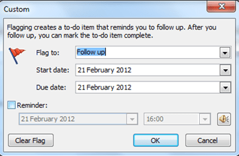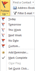 Emails and contacts can be ‘flagged’ for future attention using the follow up flags feature. Items flagged appear in the To Do list bar and To Do List view in Tasks.