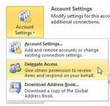 - Click File tab, choose Info, click the Account Settings button and choose Delegate Access