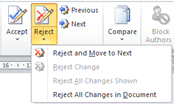 - To accept all changes in the document, choose Reject All Changes in Document from the Reject button