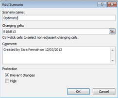 - In the Scenario Name box enter a name for the scenario – e.g. Optimistic