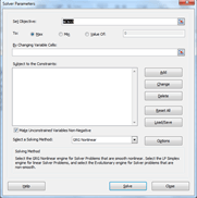 - Set the objective cell in the Set Objective box and choose if you wish that cell to be set to the highest possible value (Max), lowest possible value (Min) or a fixed value using Value of.