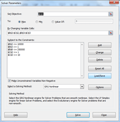 With Solver you can find the maximum or minimum value for a formula in one cell, called the objective cell, subject to constraints or restrictions on the values of other formula cells on a sheet. Solver works with a group of cells, called decision variables or variable cells, which are used by the formulas in the objective and constraint cells. Solver adjusts the values in the variable cells to satisfy the limits on constraint cells and produce the result you want for the objective cell.