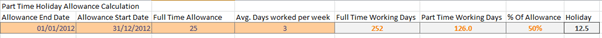 Now to create the holiday allocation calculations. This is my preferred method of calculating part-time allowance but please ensure it meets your company policies before implementing: