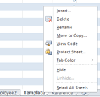 • Right click on the Template(2) sheet tab and choose Rename from the sheet tab menu. Enter the name of the employee