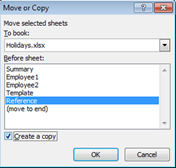 • The new sheet can be positioned as you choose, but should be before Reference. Figure 4 below shows that the new sheet will be positioned before the Reference sheet and as a duplicate of Template