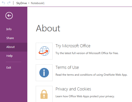 The style carries on through into OneNote. This is the one web app I have used extensively in 2010 and have had my desktop notes synchronized through my personal SkyDrive account, so that I can use OneNote in my iPhone and iPad. The experience with OneNote installed on the PC is better, given that you can use it as a printer too not to mention the integration with Outlook and the rest of Office. However here again, it is possible to work purely with the web app in terms of available functionality
