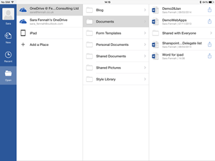 Additional sites from your organisations Office 365 hosted SharePoint can be added to Word for iPad, making it possible to view and edit documents stored there.