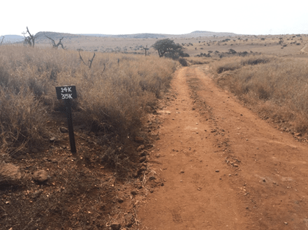 The route now takes you around the back of Lewa House and it’s a definite up incline for the next two kms.
