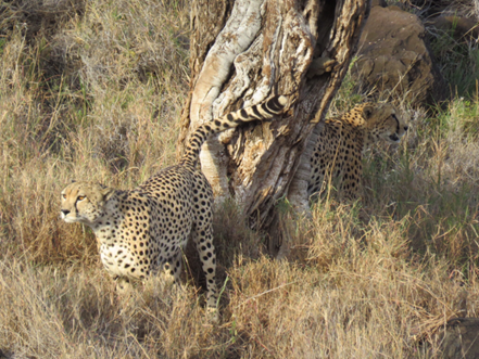 Between 12km and 13km I passed by the hill upon which we’d seen two cheetah brothers the day before. And the same area we’d see them the next day. I’m really glad I didn’t make the connection as I was going on along. It was only the following day watching two very full bellied cheetahs that it struck me.