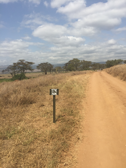 However, by 2km the runners were off and away, leaving the walkers with a much quieter route and time to look around, take in the scenery and enjoy the views. Admittedly in the distance, but I saw gazelle, zebra, rhino, giraffe and oryx as I went round. Having only my phone camera there was no chance of photographing the wildlife, so I concentrated on the scenery and the distance markers.