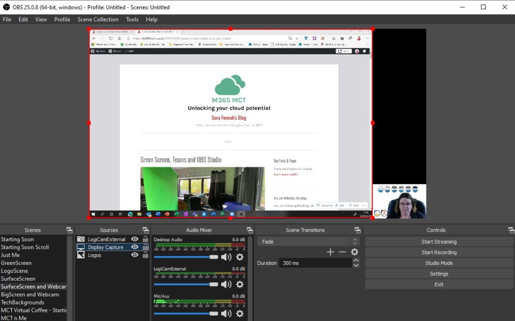 - Post 1 – Green Screen, Teams and OBS Studio looks at getting up and running with OBS Studio