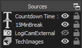 - Create a second text source and format as desired add the text “countdown”. Remember what you name this text source as you will need to pick it up later.