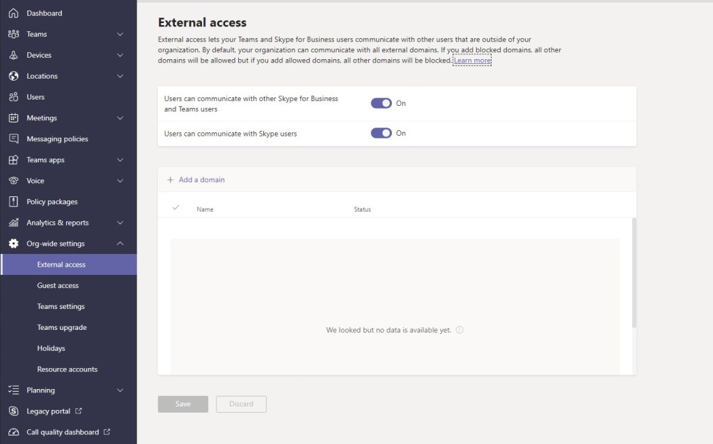This guide looks at communication which is Teams to Teams, no Skype of any kind is covered. It is possible for administrators to restrict these features with different policies and settings in Teams and Azure AD, but to try and keep it simple I’ve assumed all communication is permitted at both ends of the conversation, which means: