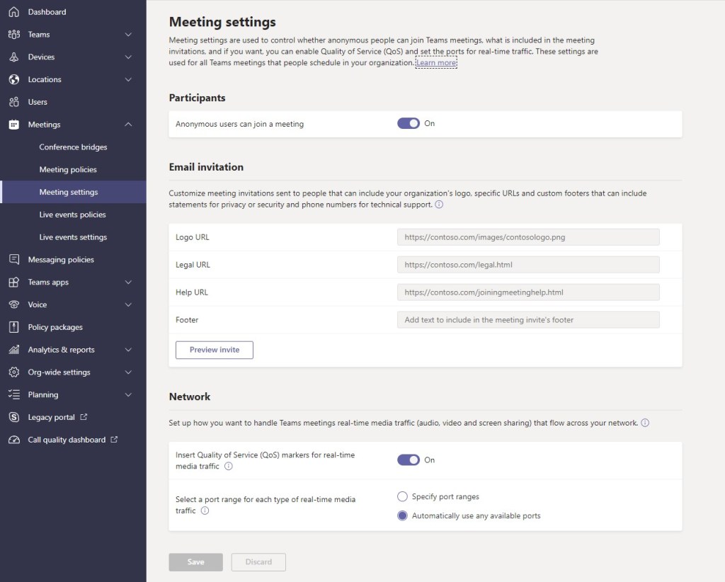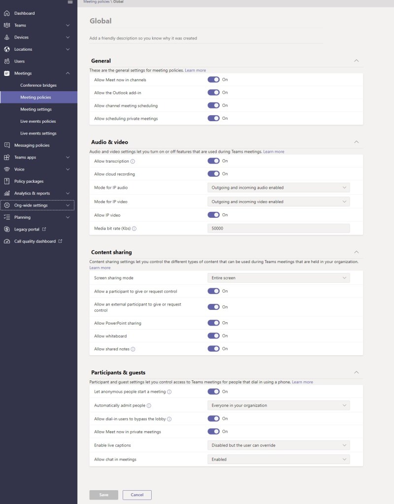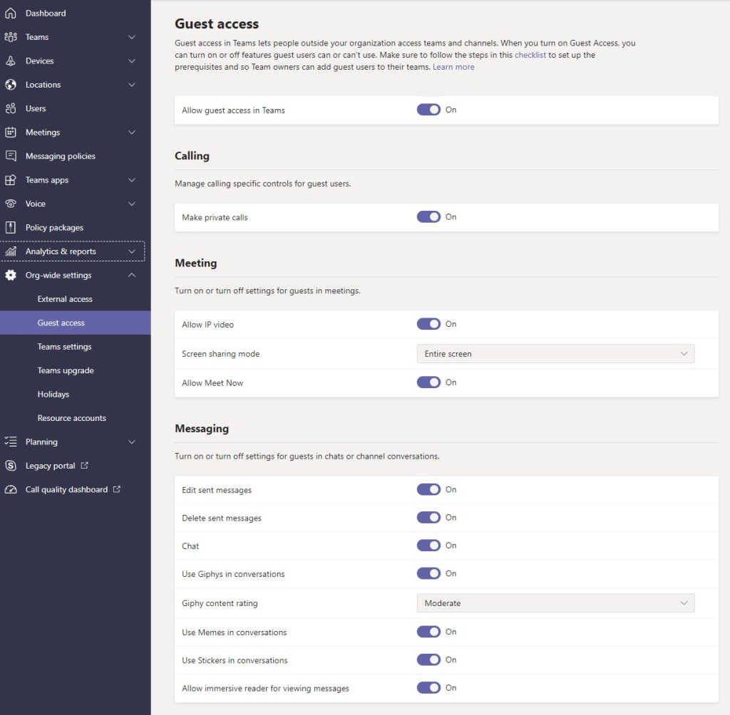 - Policies and Teams settings permit communication with Guest and External Users including anonymous meeting join without restrictions