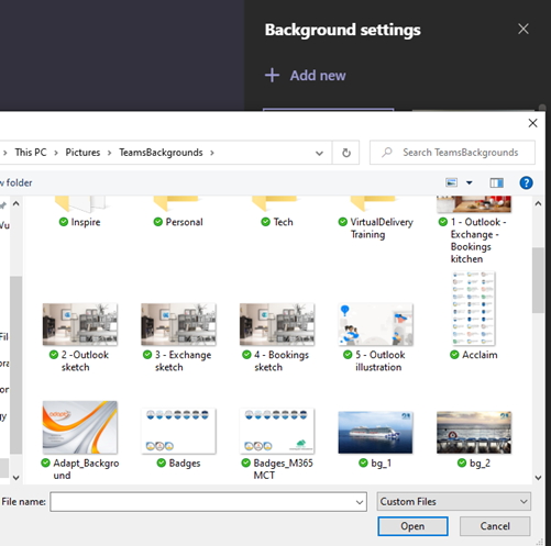- Save your picture somewhere sensible. (I created a folder in my OneDrive called TeamsBackgrounds, so if I move to a new PC, I still have my background images available).