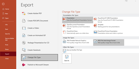 - When you are happy save the file as an image (remember to save the PowerPoint too, so you can edit if required)