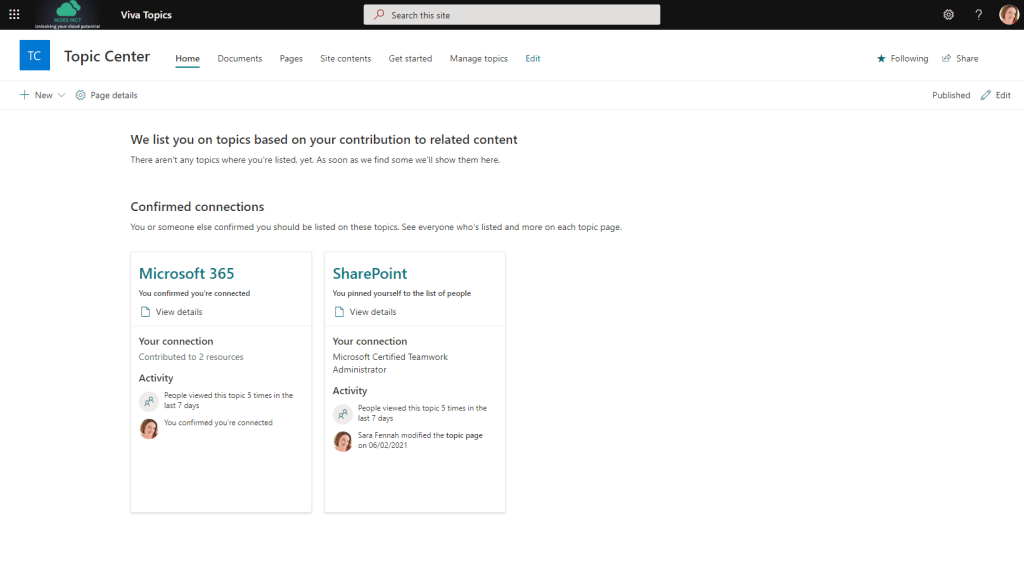 Call me curious, but I wanted to have a go. According to comments in the Viva Tech community it takes 2 hours to 2 weeks before Viva Topics is ready to go. It did take 2 days before my first suggested topic showed up, and I’m still at just the one suggested topic. So I’m not quite able to write a blog about how it works yet. But I thought I’d share the set up experience.