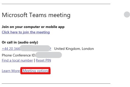 To access the meeting options before the meeting use option 1 or 2 below. To access the meeting options during the meeting I prefer option 4 below as you don’t leave the meeting, but option 3 will take you to the same page as options 1 & 2, if you prefer.
