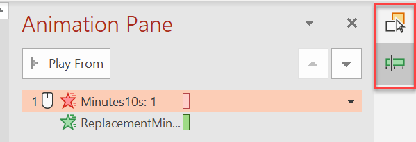 To switch between the selection pane and animation pane use the icons beside the left pane.