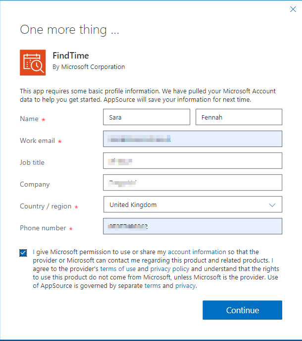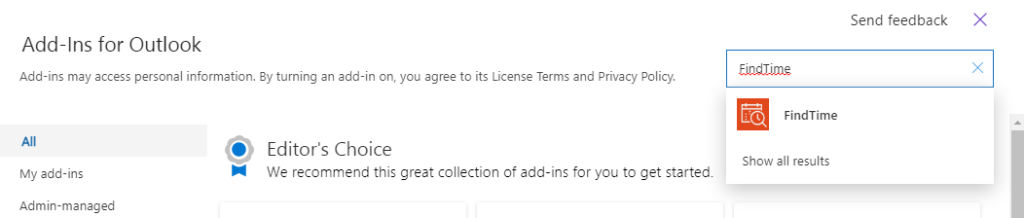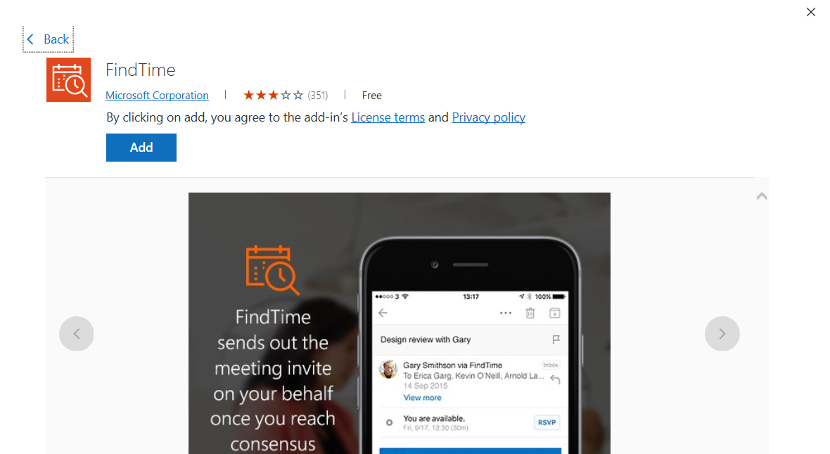 Search for FindTime and click the Get it now link. You will need to fill in your details and authorise app addition before clicking Continue