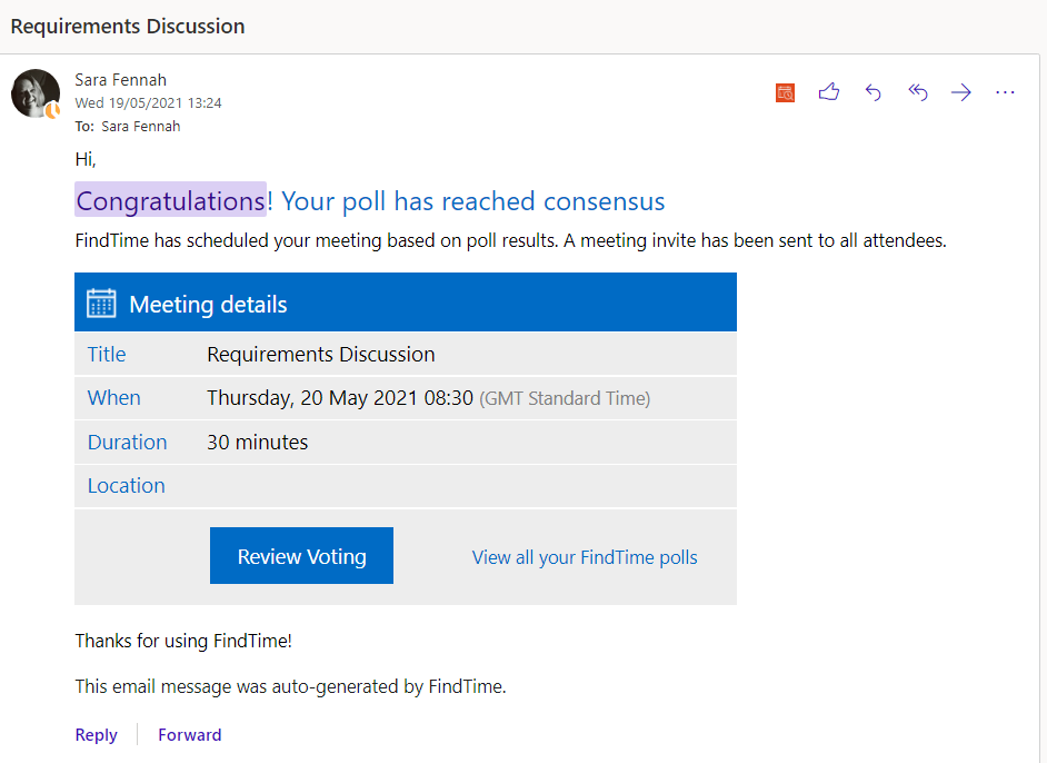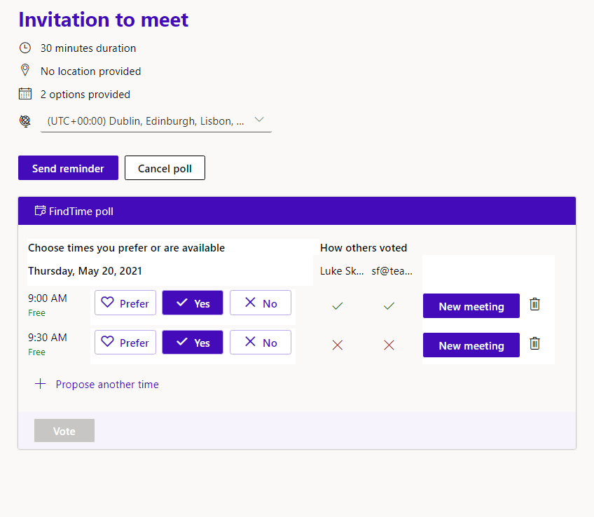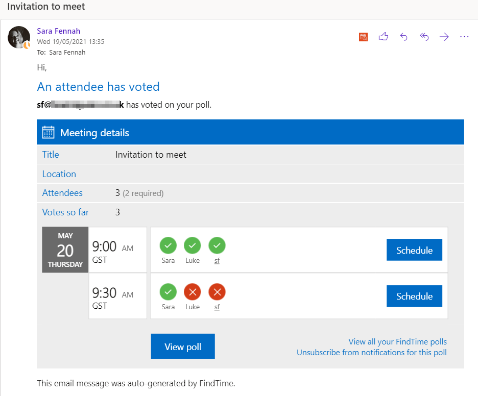 When the poll is finished the meeting invite will be scheduled automatically and you will be updated.