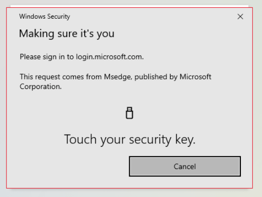 Follow the prompts, some of which just flash up on screen too quick to screen grab! And then you will be prompted to authenticate on your key, in my case by fingerprint.