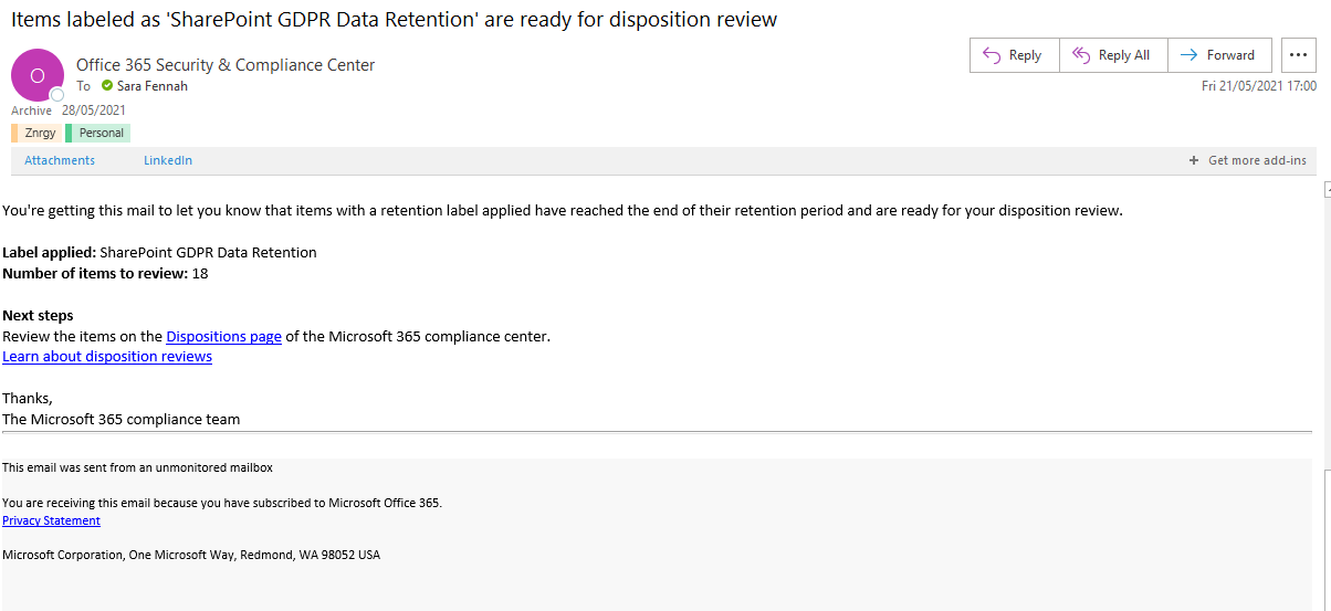 In May 2021 Microsoft published a blog announcing Multi-stage disposition approval in Microsoft Records Management in Microsoft 365 as well as some other really nice enhancements to the Information Governance and Records Management tools. This is the third blog post in a series looking at the new features.