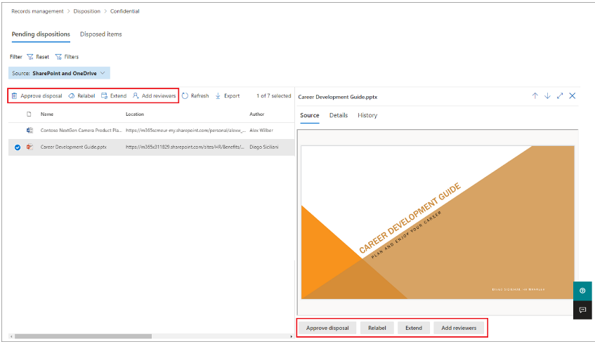 The updated content explorer for disposition reviews is offering improved performance but also some really useful practical enhancements in filtering as well as a file list trimmed to show only the items you can approve for disposal, not all files awaiting approval within your organisation. A file viewer has been incorporated into the disposition review screen, making it easier to review content before approving the disposal. You can now also see the review history of an item including comments added by other reviewers. The final new feature is the ability to add other reviewers who were not previously included in the disposition review. Though they willl need the appropriate permissions to be able to review the item.