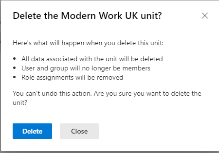 Confirm you wish to delete the unit. Note you CANNOT undo this action nor recover the unit from any recycle bin!