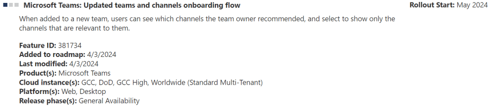 3 updates for Microsoft Teams. 1st, a new addition. Updated the teams & channels onboarding flow, is looking to simplify getting new users onboarded into the Team, especially teams with a large number of channels (due from May 2024).